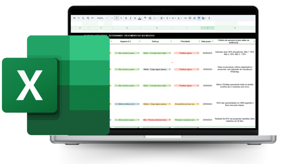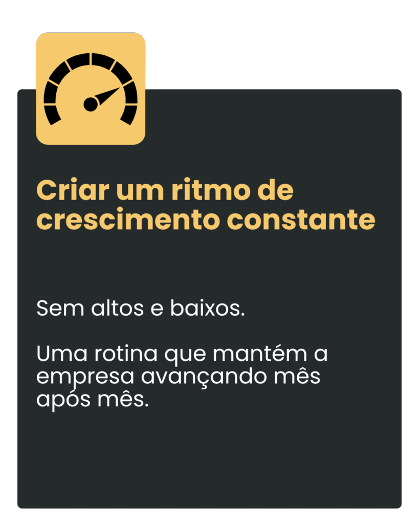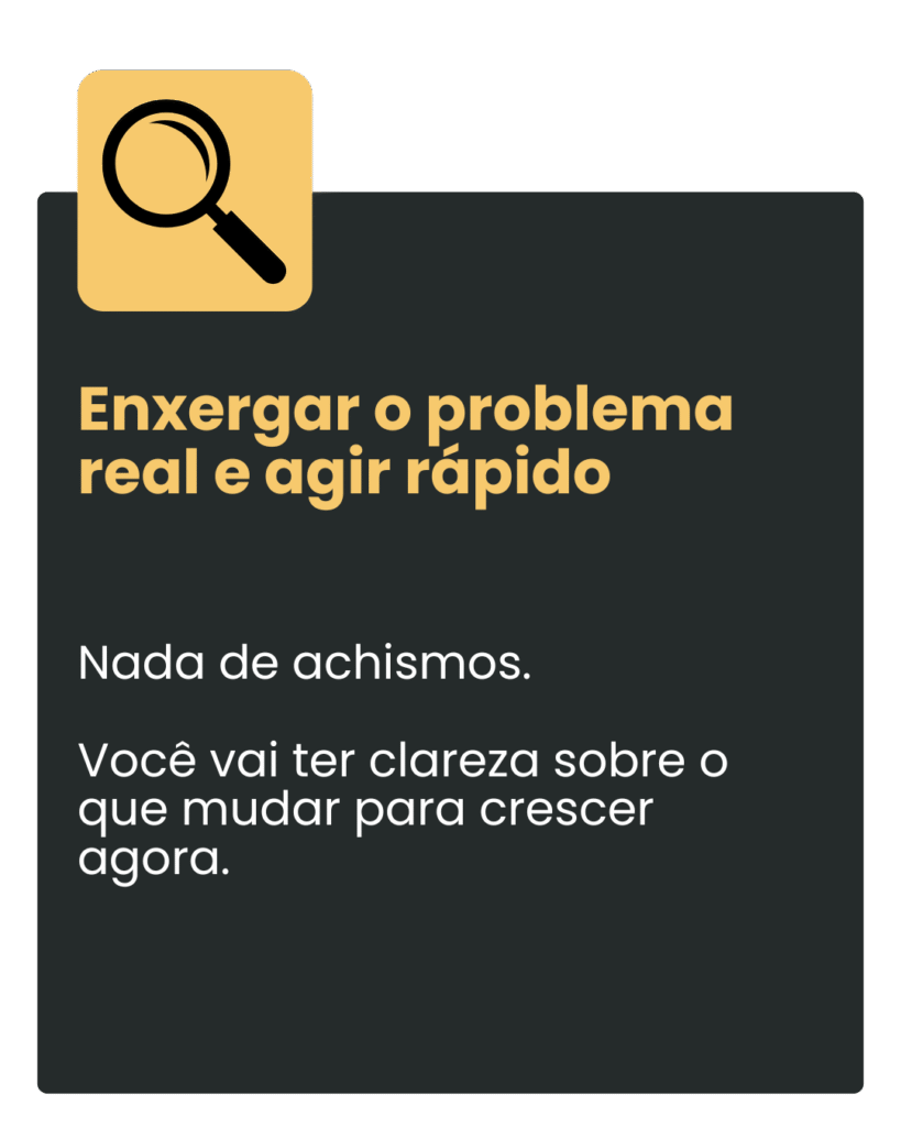 O método já te guia passo a passo para identificar os gargalos e montar o plano certo para destravar o crescimento.