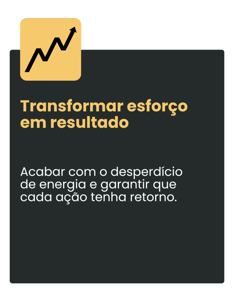 Monte um plano claro e eficiente para priorizar o que mais gera resultado, aproveitando ao máximo os recursos que você já tem.